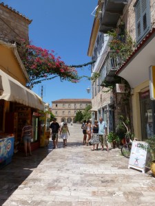 Nafplio is een heel charmant, bruisend havenstadje op drie kwartier rijden van het huis. (Neem de oude weg, bochtig maar prachtig door kleine dorpjes en uitgestrekt olijfboomgaarden. Duurt wel wat langer). Het was de eerste hoofdstad van het moderne Griekenland.